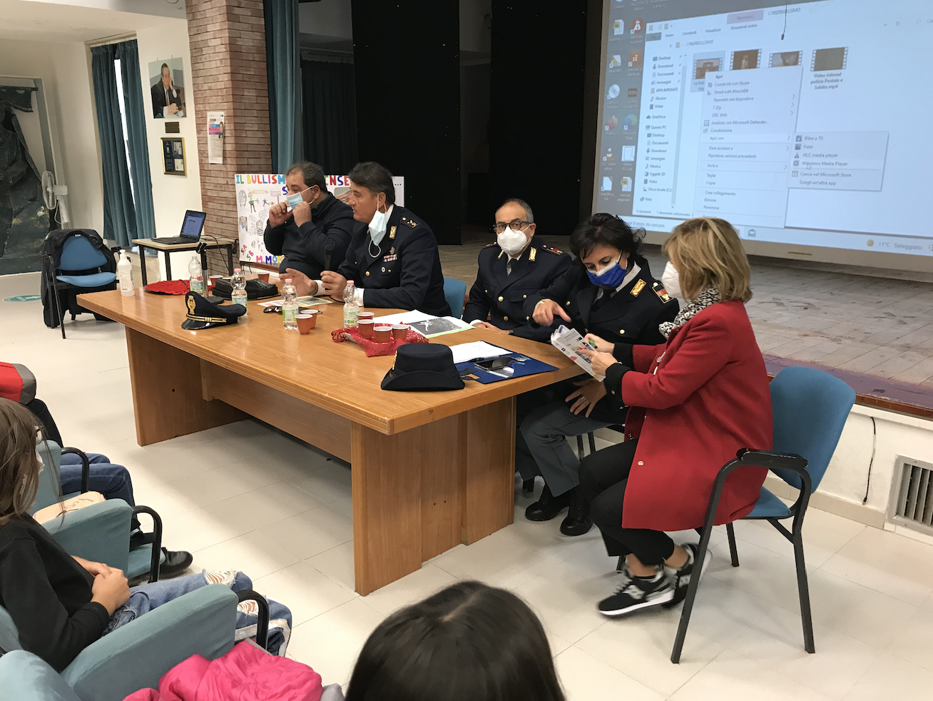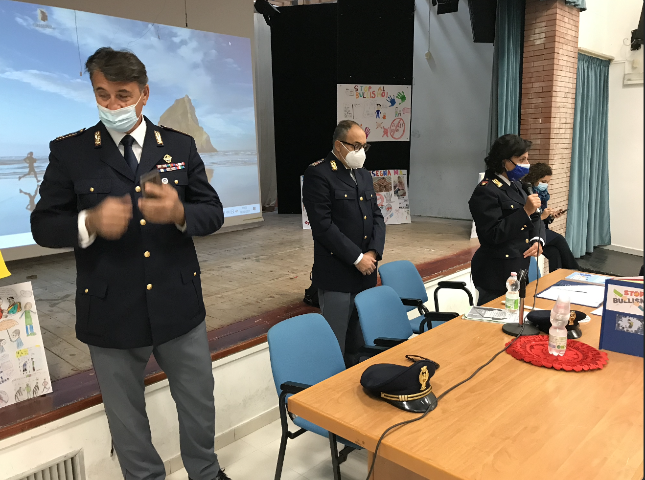 I relatori: l’Assistente capo dott.ssa Giuseppina Iaccarino, l’assistente capo coordinatore Claudio Picarelli, il Sovraintendente capo Giuseppe Borrelli e il Sostituto Commissario Dott. Massimo Iacopino hanno argomentato sulla sicurezza in rete, sui tranelli del web, sui rischi legati alle diffusioni di immagini ed alle precauzioni da adottare per diventare buoni e consapevoli cittadini digitali.