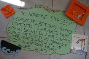 I bambini dI tutte le sei sezioni hanno ascoltato con entusiasmo la maestra Patrizia che ha letto un libro dal titolo “Pezzettino”. Questo piccolo pezzetto è in cerca della propria identità. È talmente piccino, in confronto ai suoi amici, tutti grandi e grossi, capaci di volare, nuotare, arrampicarsi, che si convince di essere un pezzetto di qualcun altro. Così comincia una ricerca che, alla fine, lo porterà a esclamare al colmo dello stupore e della felicità: “Io sono me stesso!”