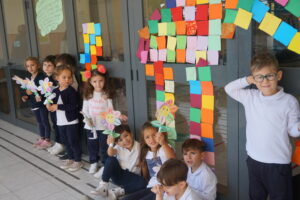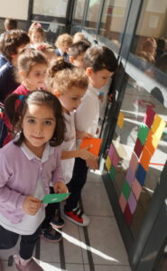 Ogni bambino è sé stesso e seguendo la propria unicità, ha creato il proprio pezzettino colorato.I pezzettini, tutti diversi nelle tecniche e nei colori hanno poi formato un collage, essenza del racconto di Lionni. I piccoli hanno così testato con mano ciò che viene condiviso dal loro primo giorno all’infanzia, cioè che la completezza la si ottiene insieme agli altri, grazie al contributo di ciascuno.